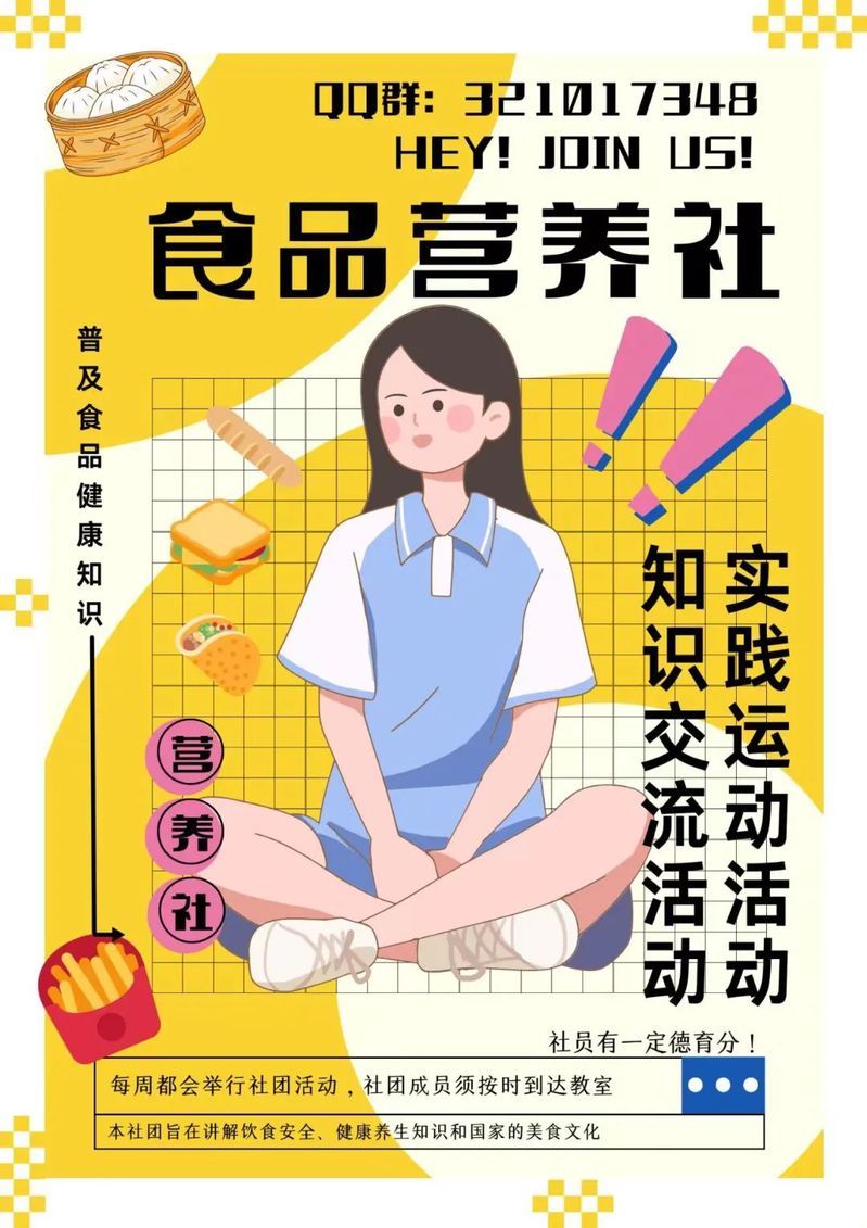 社团简介:食有乾坤·营养社是2021年成立的社团,其举办目的在于普及食品健康知识,提高同学们的生活动手能力,丰富同学们的课余生活,为今后的健康生活起到积极推进作用。本社团旨在讲解饮食安全、健康养生知识和各地区的美食文化。