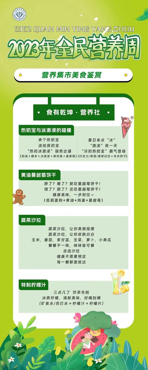 2023年5月14-20日(5月第三周)是第九届全民营养周,全民营养周是指全国人民的营养知识学习周、营养理念传播周、营养生活方式实践周,由中国营养学会、中国疾病预防控制中心营养与健康所等单位在2015年共同发起。为贯彻落实《健康中国行动(2019-2030)》及《国民营养计划(2017-2030)》,由上海市营养学会、中国营养学会基础营养学分会、中国营养学会特殊营养分会指导,yl34511线路中心主办,yl34511线路中心后勤部服务中心及薄荷健康科技股份有限公司协办,2023全民营养周开幕式将于5月15日(周一)中午12:00在北苑食堂门口举行。