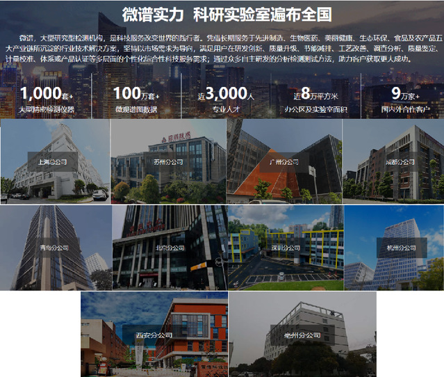 上海微谱检测科技集团股份有限公司总部位于上海市杨浦区,作为一家大型研究型检测机构,是科技服务改变世界的践行者。凭借长期服务于先进制造、生物医药、美丽健康、生态环保、食品及农产品五大产业链所沉淀的行业技术解决方案,通过众多自主研发的分析检测测试方法,助力客户获取更大成功。