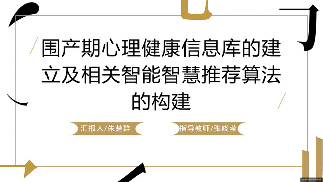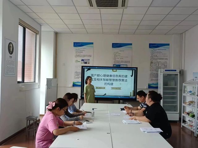朱楚群同学和她的团队成员带来了“围产期心理健康信息库的建立及相关智能智慧推荐算法”项目。该项目从关注围产期孕妇的心理健康问题出发,围绕专家共识、健康信念模型等理论知识来编制信息库并建立智慧推荐系统,从而达到对围产期孕妇及其家庭成员的健康干预。