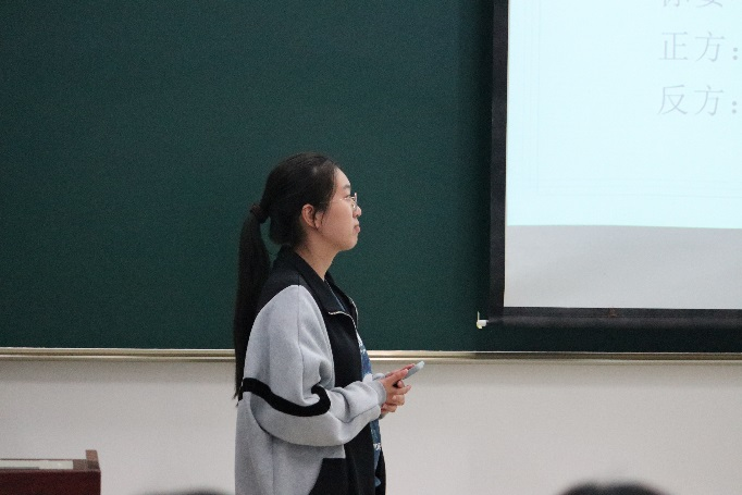 辩论伊始,正方辩手开篇立论,有理有据的提出了自己的观点。辩论过程中,辩手们语锋敏捷,旁征博引,巧设陷阱,频频咬文嚼字,思索对方之漏洞,彰显了灵气四溢的独立思考与妙语连珠的表达。台下观众同学凝神聆听,掌声不断,精彩写满每一时刻。