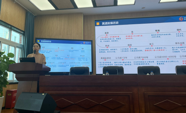 在分享互动环节,糖酒工匠、金枫酒业技术中心高级研发员黄媛媛作为国有企业女性职工和一线专业技术人员代表,应邀带来个人职业生涯发展与专业成长成才的专题分享。她鼓励同学们,无论未来从事何种职业,都要保持热爱、坚守责任心,并善于在平凡的日常工作中发现价值、创造价值。