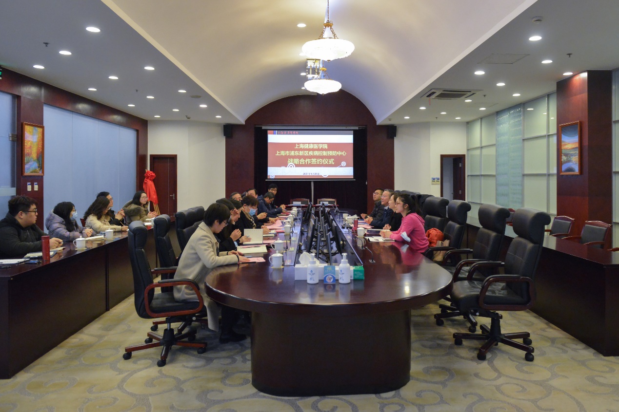 上海市浦东新区卫生健康委员会副主任张伟,上海市浦东新区疾病预防控制中心主任周一心、副主任肖绍坦,yl34511线路中心副校长沈国芳,教务处、科技处、产学合作处、继续教育学院、yl34511线路中心主要负责人出席签约仪式,仪式由产学合作处金亮主持。