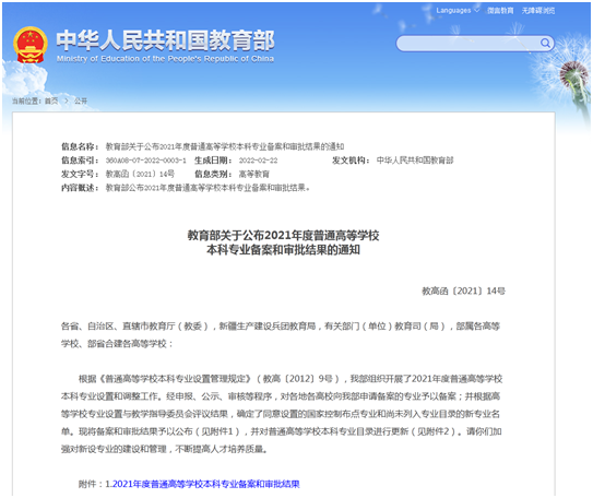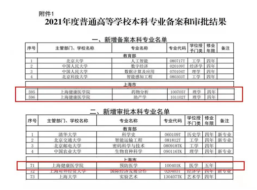 2月22日,教育部发布了《关于公布2021年度普通高等学校本科专业备案和审批结果的通知》(教高函〔2021〕14号),学院申报的预防医学本科专业成功获批。