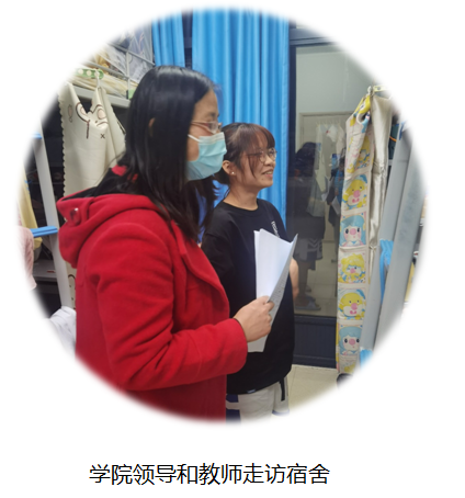 4.深入学生当中,了解学习情况:学院书记、院长和值班教师逐一走访每一间学生宿舍,现场关心了解学生学习生活情况;学院陈泓书记帮助解决学生的后顾之忧,给在校学生写了一封关于在线学习期间学习生活的公开信,解答学生学习、生活中的问题,鼓励学生克服困难,激发学生在线学习动力;对于没有及时签到的同学,任课教师及时联系学生,了解学生困难;同时树立优秀学生榜样,组织学生在线学习心得征文。