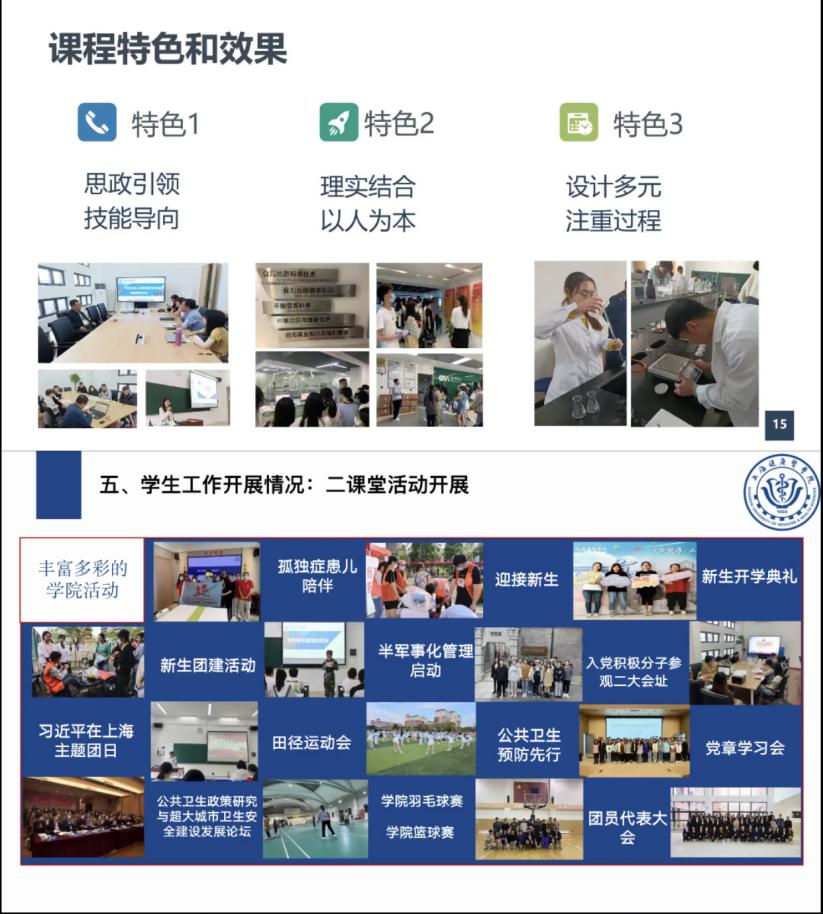 本次研讨活动共分三个环节:教研室主任说专业,教师说课程,辅导员说学生工作。食品卫生与营养专业负责人曲春波老师,公共事业管理专业负责人王欣国老师分别围绕各自专业的“专业定位、专业办学条件、教学组织实施、建设成果、未来思考”等方面对专业展开叙述;任课教师张静怡、唐迪就自己所教授课程的“课程性质与目标、课程内容设计、教学实施与资源、课程效果与特色、课程反思与改革”等方面对课程展开叙述;辅导员赵乐宏老师从学院的“基本情况、学院人才培养模式探索、学院学生情况、学生工作教师团队、学生工作开展情况、学风建设工作思路”等方面对学生工作展开叙述。