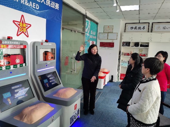 为助力我院学生参加第十三届“挑战杯”中国大学生创业计划竞赛校内赛作品孵化计划,引导和激励学生培养实事求是、刻苦钻研、勇于创新的精神,那立欣副院长与王欣国老师带队走访上海国心康安全技术中心进行院企合作、产品应用与推广事宜。了解到上海国心康拥有独立知识产权的心肺复苏CPR+AED科普机器人,致力于科普推广公益项目,在社区和企事业“公益急救科普”方面具有多年的推广经验,尤其是其发明的CPR+AED科普机器人融合了互联网和物联网技术,是影音媒体一体化、寓教于乐的科教机器智能机器人。企业面临着如何进一步完善产品、扩大推广应用的问题,在此背景下,学院组织了由王雨叶、何月茹、宋鋆沂和张伟航四名2020级公共事业管理专业本科生与企业共同组成的创新创业团队,那立欣、王欣国两位教师担任指导老师,围绕CPR+AED科普机器人的功能优化、校园推广、走进社区等进行思维碰撞,校内创新创业团队合力撰写了创新计划申报书,经过专家评审,目前已进入校内赛路演阶段。接下来,CPR+AED科普机器人创新创业团队将继续聚焦需求、凝练特色、不断完善,争取不断积累经验,为我国心肺复苏技术的推广和产品开发贡献自己的力量。此外,这个项目还在学校的“上海市商业精英赛挑战赛”上所使用,辅导员赵乐宏老师带队“心肺复苏CPR+AED科普机器人产品介绍”,将这款机器拟做出口商销售至国外,获校三等奖的好成绩。